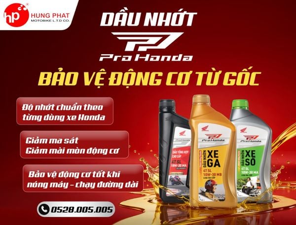 Dầu nhớt là yếu tố quan trọng quyết định độ bền và khả năng vận hành của xe máy. Để xe luôn chạy êm, máy bền và ổn định theo thời gian, việc lựa chọn dầu nhớt đúng chuẩn là điều không thể bỏ qua. Dầu nhớt Pro Honda được nghiên cứu và phát triển riêng cho các dòng xe Honda, đáp ứng đầy đủ các yêu cầu kỹ thuật của động cơ.